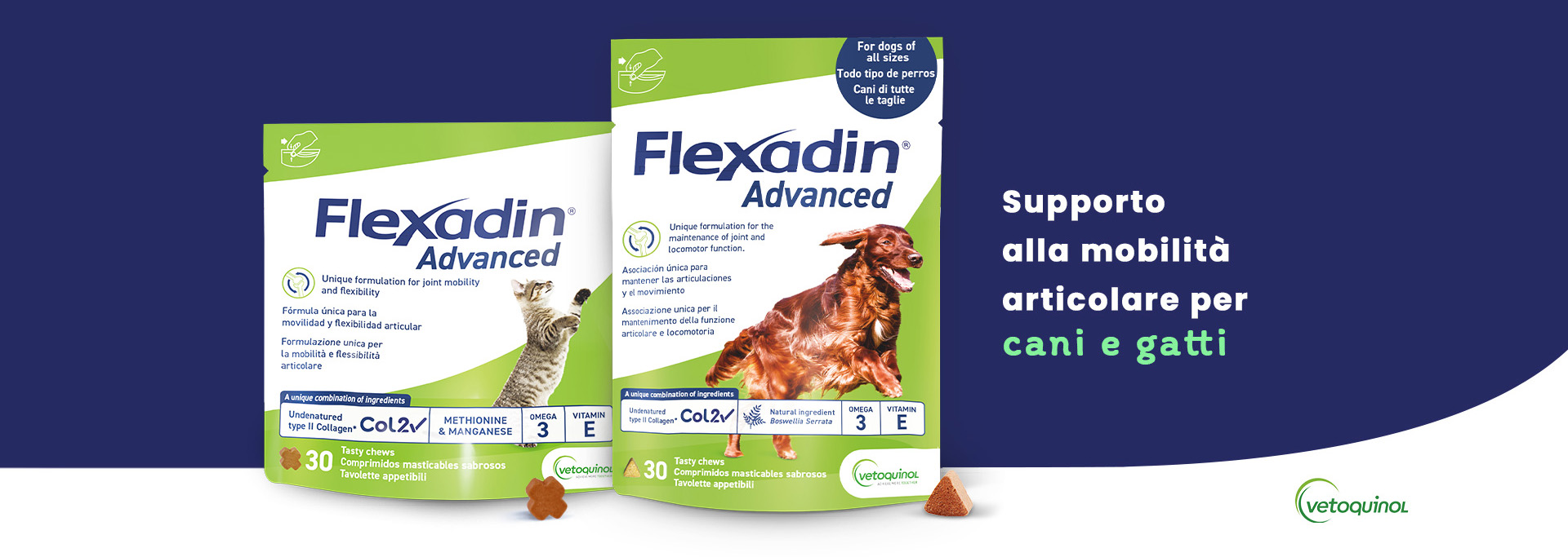 Puoi acquistare la tua confezione di Flexadin® Advanced dal tuo Medico Veterinario di fiducia, in farmacia, nei negozi specializzati oppure su Amazon o in uno degli shop online dei nostri partner.